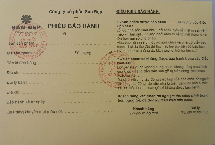 Phiếu bảo hành sàn nhựa tại công ty Sàn Đẹp