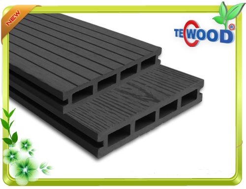 Sàn gỗ bể bơi Tecwood MS140K25A-Black bề mặt vân gỗ / kẻ sọc là dạng thanh rỗng, lỗ vuông.