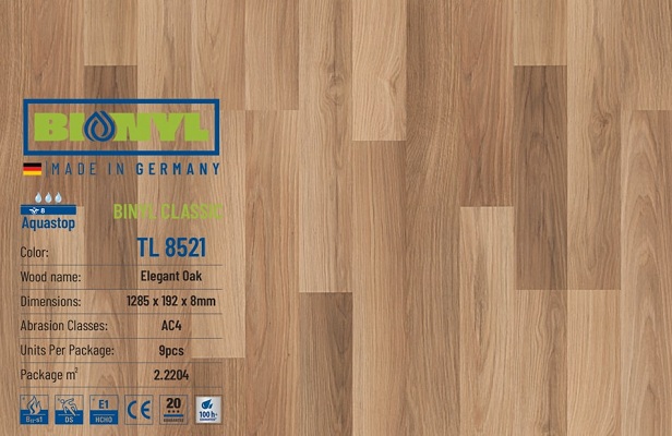 Quy cách sàn gỗ Binyl 8521 dày 8mm bản to