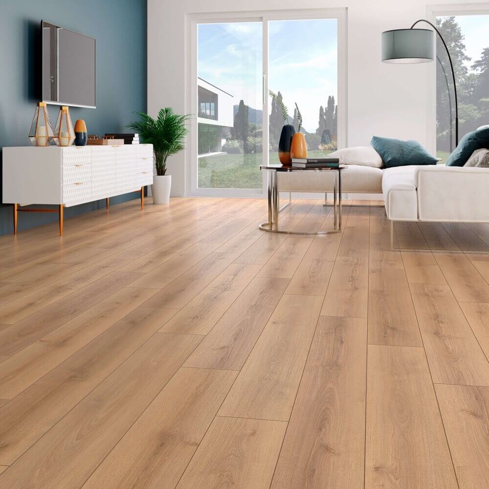 – Sàn gỗ Camsan 625 thuộc dòng 8mm, hèm phẳng có màu vàng kết hợp với các đường vân gỗ sồi màu nâu nhạt tạo cảm giác thư giãn, thoải mái cho người sử dụng.