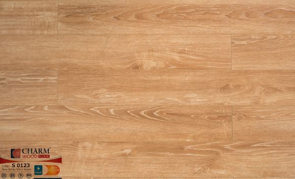 Sàn gỗ Charm Wood S0123 dày 12mm là dòng sản phẩm chịu nước tốt, được sản xuất trong nước nên có mức giá rẻ đang rất được rất nhiều người tiêu dùng lựa chọn. Sản phẩm Charm Wood S0123 có màu vàng nhạt, vân gỗ sồi màu nâu nhạt hài hòa tạo cảm giác ấm cúng, thoải mái cho không gian sống như được lát sàn gỗ tự nhiên. Gam màu này phù hợp với cả thiết kế nội thất cổ điển và hiện đại.