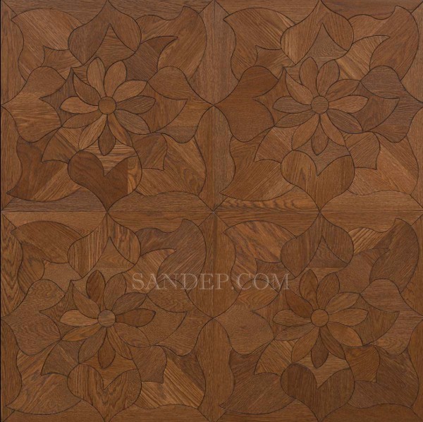 – Từng cánh hoa hay chiếc lá trên mặt sàn đều được tạo ra bởi sự chênh hướng của vân gỗ – đây là kỹ thuật tinh tế giúp giữ được chất “gỗ thật” thay vì phải dùng kỹ thuật khảm inlay thủ công nặng chi phí.