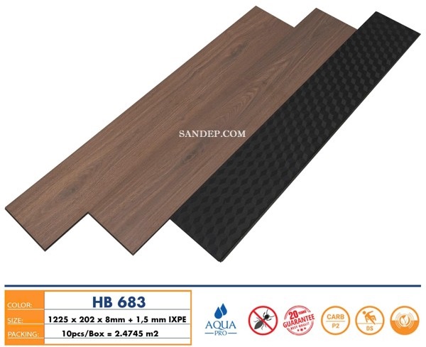– Độ dày: Với độ dày 8mm, sàn gỗ HOBI BLACK HB 683 có độ bền cao, khả năng chịu lực ổn định, thích hợp cho các không gian có mật độ đi lại từ trung bình đến cao.