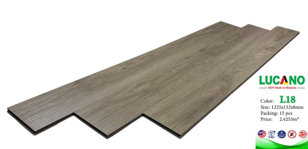Ván sàn gỗ công nghiệp Lucano L18 có gam nàu nâu xám, vân gỗ hình núi cực kỳ tự nhiên, độc đáo. Gam màu sắc này là lựa chọn cho các thiết kế nội thất cổ điển, không gian sống có nhiều ánh sáng. Không nên lắp sàn Lucano L18 ở các khu vực có diện tích nhỏ, ít ánh sáng sẽ khiến cho không gian có cảm giác chật chội, bí bách. Lucano là dòng sàn gỗ công nghiệp giá rẻ những sở hữu nhiều ưu điểm vượt trội sau: