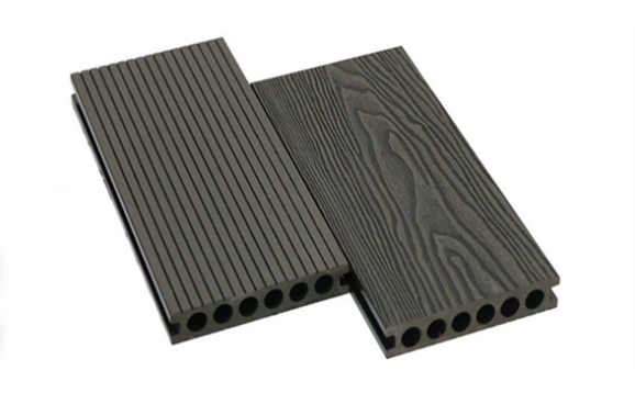 Hỗn hợp nguyên liệu trên được hòa trộn trong hệ thống máy trộn, gia nhiệt ép đùn qua hệ thống khuôn mẫu tạo ra tấm ván dài và cứng, rỗng, với thiết kế một mặt giả vân gỗ, một mặt kẻ to dài.