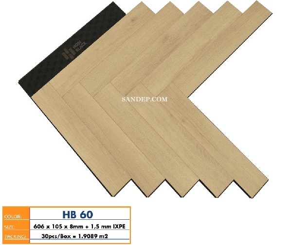 606 x 105 x 8 mmSàn gỗ xương cá Hobi Black HB 60