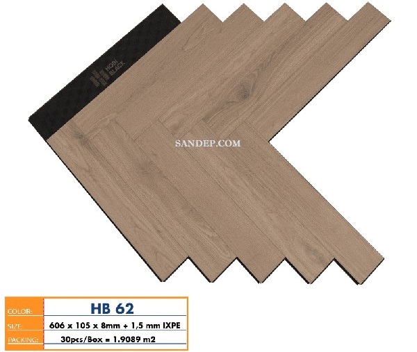 606 x 105 x 8 mmSàn gỗ xương cá Hobi Black HB 62