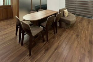 – Vân gỗ: Vân gỗ tự nhiên rõ nét và đẹp mắt, tạo cảm giác gần gũi, đồng thời mang lại vẻ đẹp bền vững. Các vân gỗ phân bố đều, mượt mà, mang đến một diện mạo thanh lịch và tinh tế cho sàn gỗ.