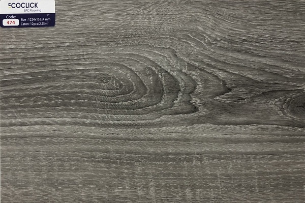 Sàn nhựa SPC Ecoclick 474 hèm khóa có vân gỗ màu xám lông chuột, vân gỗ xoáy sang trọng tạo nên vẻ đẹp tinh tế